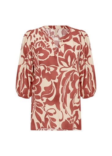 Blouse van 100% Viscose met 3/4 mouwen in de roestbruine kleur.