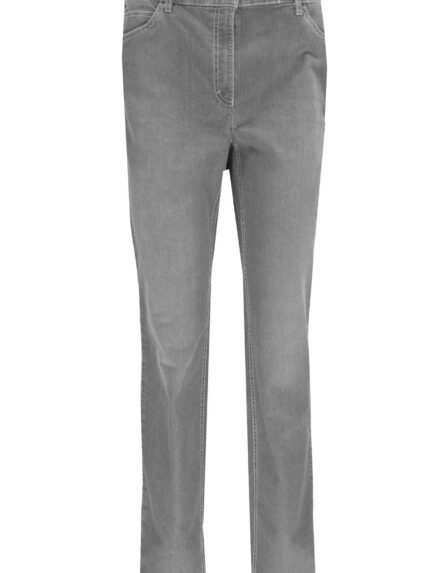 5-pocket jeans van het merk Zerres, model Cora, met een knoop- en ritssluiting. De broek is voorzien van een comfortabele tailleband. Het model is een slim fit met een hoge taille. De broek behoort tot de Comfort S lijn van Zerres/ZRS.