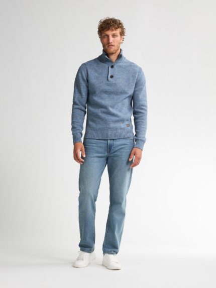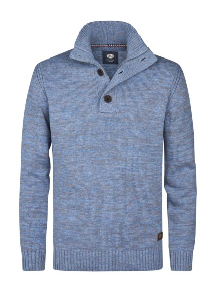 Pullover gebreide kraag met knoopsluiting van het merk Petrol, model M-ROS-KWC206 in kleur 5187 Pale Blue