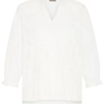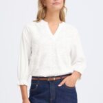 Mooie blouse met opdruk op voorpand , V-hals en 3/4 mouw van het merk Fransa in de kleur 114800 blanc model 20617435. 100% katoen