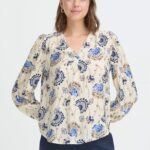 Mooie blouse /shirt print met lange moi en V-hals van het merk Fransa in de kleur 900008160 white model 20617836. 80% viscose, 20% polyamide