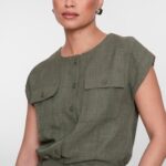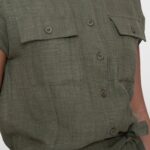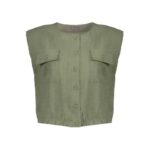 Deze blouse uit onze S26-1 collectie is uitgevoerd in een stof met een rijke linnenachtige look en maakt deel uit van een stijlvolle co-ord set. Het cropped silhouet, de korte mouwen en de subtiele knoopsluiting zorgen voor een moderne uitstraling. De borstzakken en strikdetail in de taille geven de blouse een verfijnde, vrouwelijke touch. Perfect te combineren met de bijpassende broek of los te dragen.