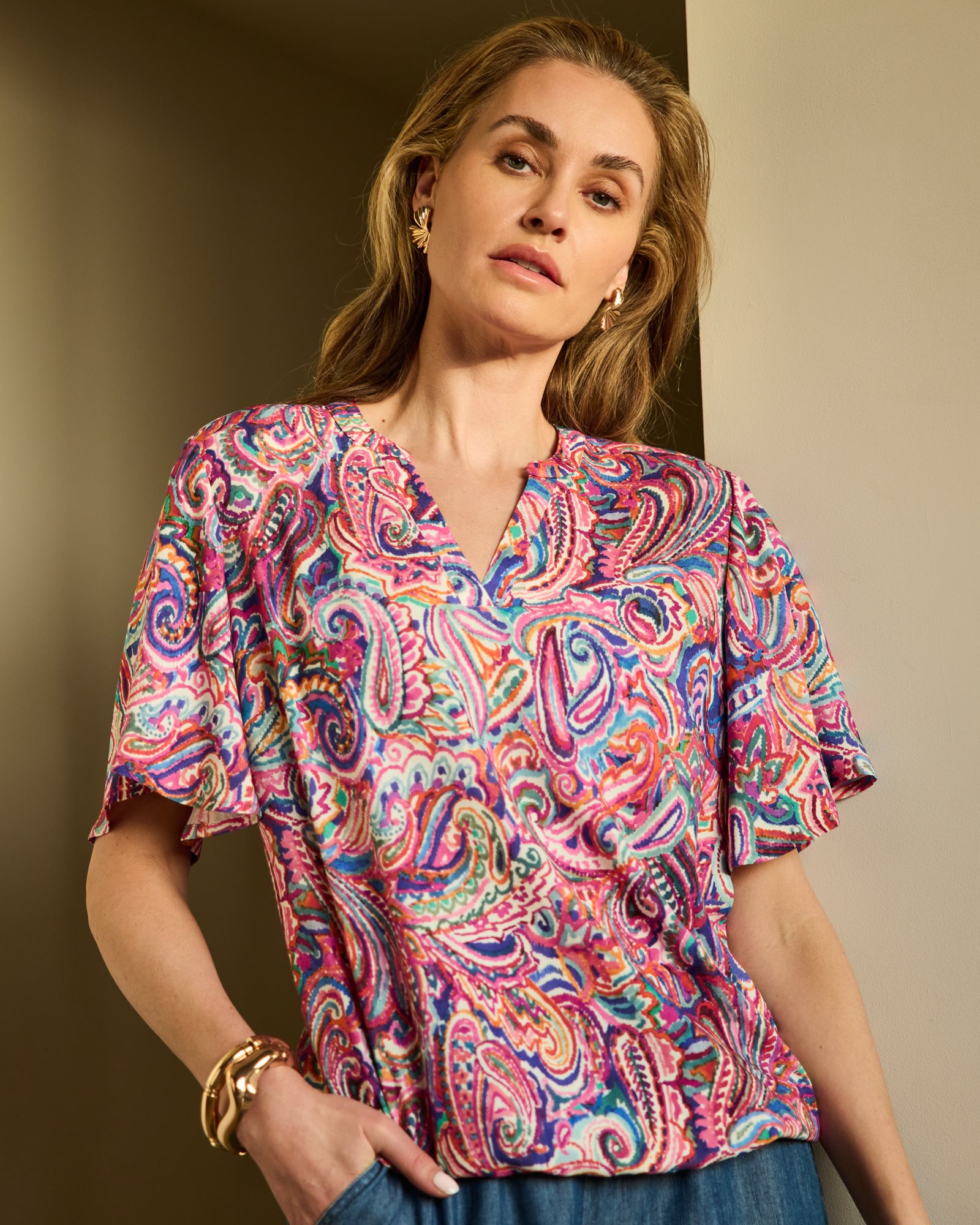 Blousetop V-hals KM fantasy. Merk Dreamstar in de kleur muticolor. Artikel Talissa. 100% viscose