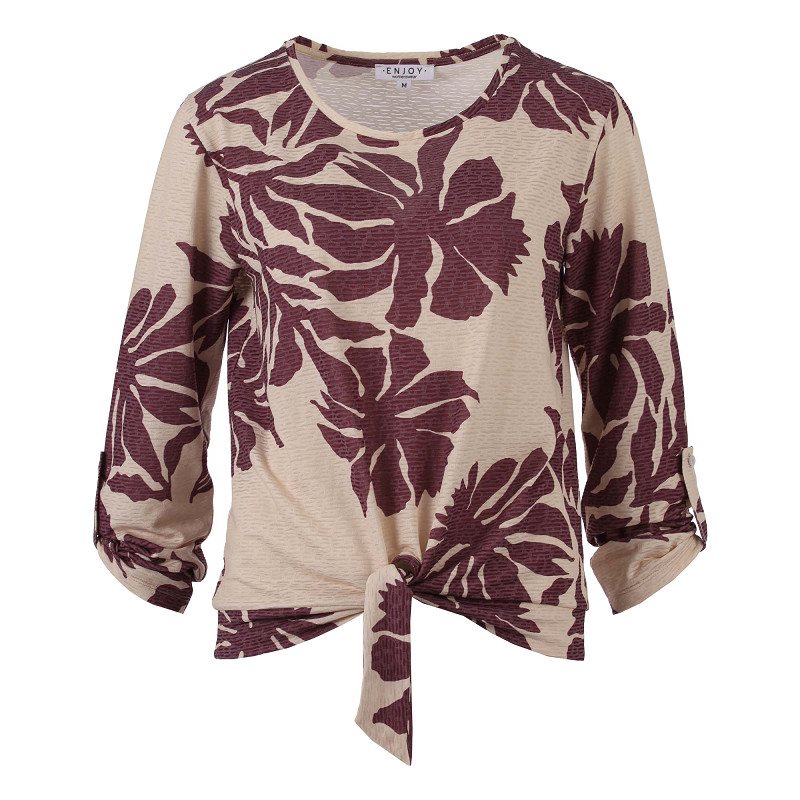Shirt LM allover print met knoop van het merk Enjoy, artikel 183834 in kleur 252 port. . 90%pe / 35%vi/ 5%ea