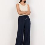 Broek is gemaakt van 48% modal, 48% polyester en 4% elastaan. Deze lange broek heeft een comfortabele elastische tailleband met trekkoord en stijlvolle zijzakken. Combineer hem met een zachte trui of een getailleerd overhemd voor een verfijnde look. Merk soya in kleur 6910 navy, artikel 27288