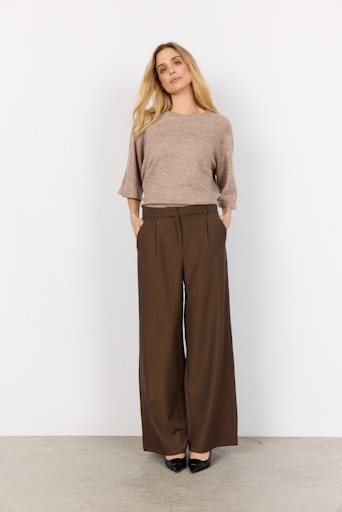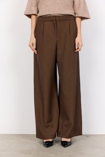 De SC-ANN 1-C broek is gemaakt van 80% gerecycled polyester, 15% viscose en 5% elastaan. Deze elegante, wijde broek heeft een hoge taille en subtiele plooien die een vleugje verfijning toevoegen. Combineer hem met de bijpassende blazer, een strakke blouse voor een verzorgde look of een casual T-shirt voor een relaxte, verfijnde look.