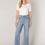 Jeans pasvorm wide fit van het merk Base Level in d e kleur 2030 light blue artikel 6000108 Amy . 98% Cotton, 2% Elastane