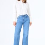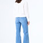Broek met rits en knoopsluiting. Deze flared jeans is van Garcia. kleur 7237 medium used model Celia 249.