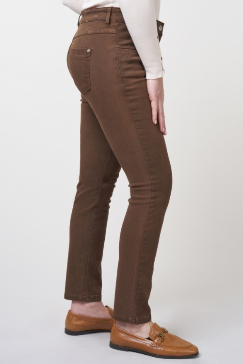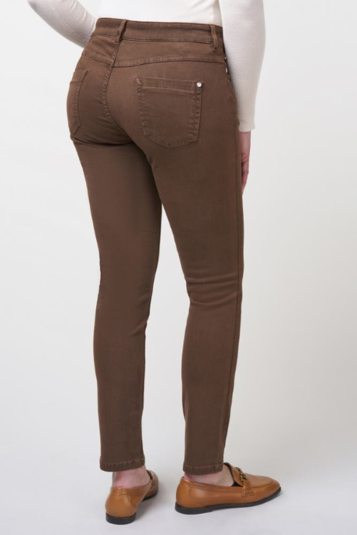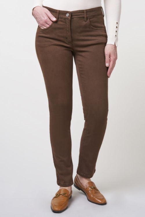 Zerres bruine broek model Twigie in een 5 pocket model, een elastische band en normale lengte.