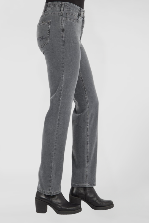 Jeansbroek met verlengde comfortabele taille door onopvallende elastische tailleband, plat zitvlak, normale dijen