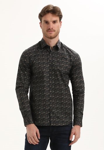 Dit overhemd is gemaakt van ademend 100% katoen in poplin kwaliteit en valt op door zijn stoere allover print. Het geborduurde logo op de borst geeft een stijlvol accent. Ideaal voor wie durft. Combineer met een donkere jeans voor een krachtige look.