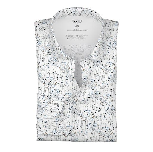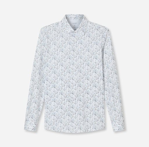 Overhemd lange mouw print merk Olymp in de kleur 00 wit model 210414 . 92% katoen/ 8% spandex