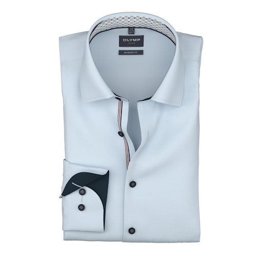 Overhemd lange mouw .Het licht getailleerde silhouet met de perfecte pasvorm De jersey-textuur van puur katoen en elastaanvezels is ademend, sneldrogend, elastisch, gemakkelijk te strijken en geurbestendig. merk Olymp kleur 11 model 120014 en 100% katoen