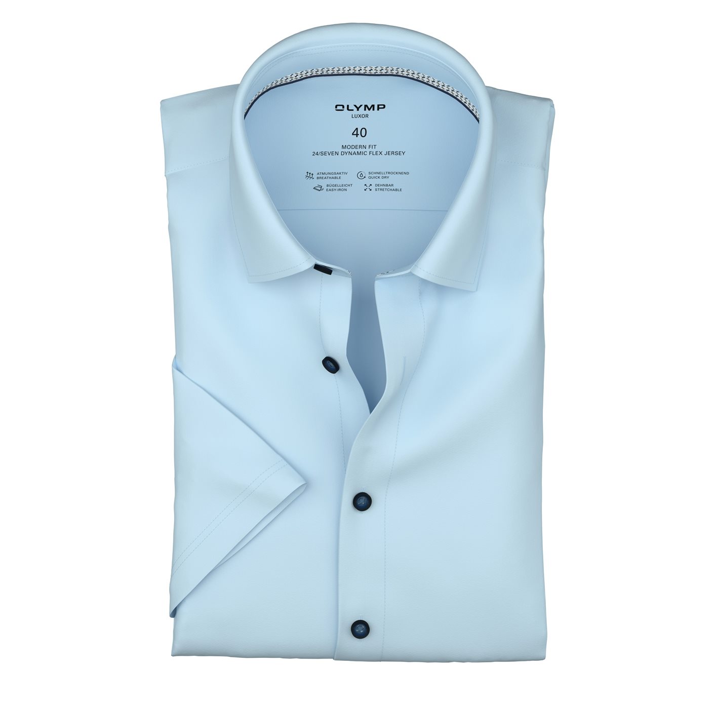 Overhemd korte mouw merk Olymp in de kleur 10 blauw model 135212 . 92% katoen/ 8% spandex