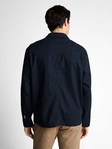 Linnen overshirt/jasje met kraag en ritssluiting. Met opgestikte borstzak, steekzakken aan de zijkant met drukknoop en extra binnenzak. Het linnengehalte is ideaal in de lente en zomer voor een licht en verkoelend draagcomfort. merk Tom Tailor in kleur a10668 Captain Blue artikel 1049645.