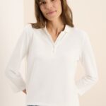 Poloshirt met 3/4 mouwlengtes.