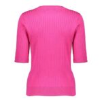 Deze pullover van Geisha is uitgevoerd in krachtige fuchsia. De knit heeft een aangesloten pasvorm. De verticale riblijnen zorgen voor een flatterend silhouet, terwijl de omslagmouwen een moderne touch toevoegen. De rijke knitkwaliteit voelt comfortabel aan en behoudt perfect zijn vorm. Aangesloten pasvorm