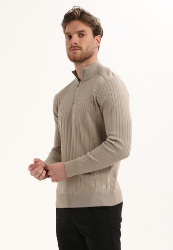 Deze stijlvolle halfzip trui van Gabbiano met gebreide streepstructuur biedt een verfijnde look met comfort. De rekbare, comfort pasvorm zorgt voor een moderne uitstraling, terwijl het subtiele logo op de rits voor herkenbaarheid zorgt. Combineer met een jeans of broek samen met sneakers.