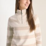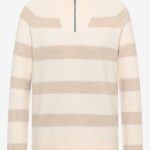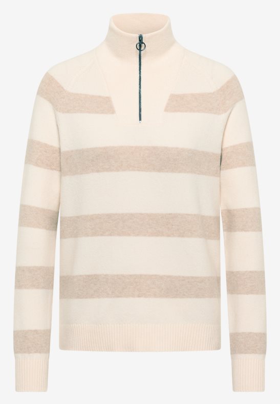 Pullover cosy streep met zip collar van het merk Cecil in de kleur 26156 beige, artikel 303753.