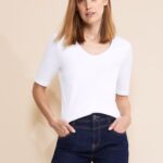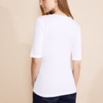 Basic staat altijd Het T-shirt voor dames ziet er lentefris uit in de nieuwe Palmira-style van Street One. Met zijn V-hals en basic style is he t een klassieker in de garderobe. De halflange mouwen maken de look af. Art. 317665 Palmira kleur 10000 white