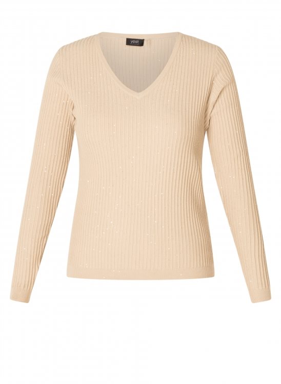 Dit truitje is ribgebreid in een dunne kwaliteit die soepel draagt en licht aanvoelt. De V-hals en regular fit zorgen voor een tijdloos model, terwijl de fijne pailletten subtiel licht vangen. Perfect om een basic outfit nét dat beetje sprankel te geven. Art. Constanza 0005828 kleur 10010 sand merk Yest.