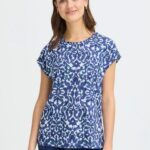 T.shirt print met ronde hals en aangeknip mouwtje van het merk Fransa in de kleur 900005107 blauw art. 20610634. 95% polyester, 5% elastaan