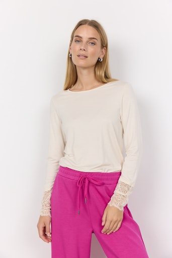 SC-Marica 226 is een basic T-shirt met lange mouwen, gemaakt van een mix van lyocell en elastaan. Het T-shirt heeft een boothals, lange mouwen met kanten boorden en een strakke pasvorm. Combineer dit mooie T-shirt met een jeans en sneakers voor een klassieke look.