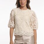 Voel je moeiteloos chic in deze verfijnde kanten top met halflange pofmouwen die net onder de elleboog met elastiek zijn samengebonden voor een elegante vorm. De delicate kanten overlay contrasteert prachtig met het gevoerde lijfje, terwijl de transparante mouwen en de geschulpte zoom een ??vleugje romantische elegantie toevoegen. Dankzij het slanke silhouet is het de perfecte top om zowel casual als sophisticated looks naar een hoger niveau te tillen. Art Chantalle kleur birch van het merk Rino&Pelle. 100% polyester; lining: 100% viscose