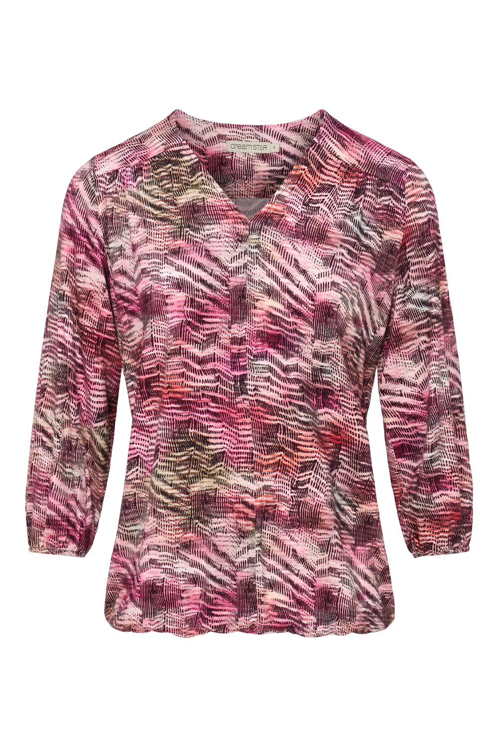 Shirt lange mouw en V-hals van het merk Dreamstar in de kleur pink mix model Bodhi. 95% viscose-5% elastaan