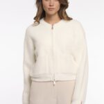 Dit korte, pluche jack combineert een zachte, pluizige textuur met een modern, gestructureerd ontwerp. Art Bento in de kleur snow white, merk Rino&Pelle. 69% polyamide, 23% polyester, 8% viscose