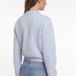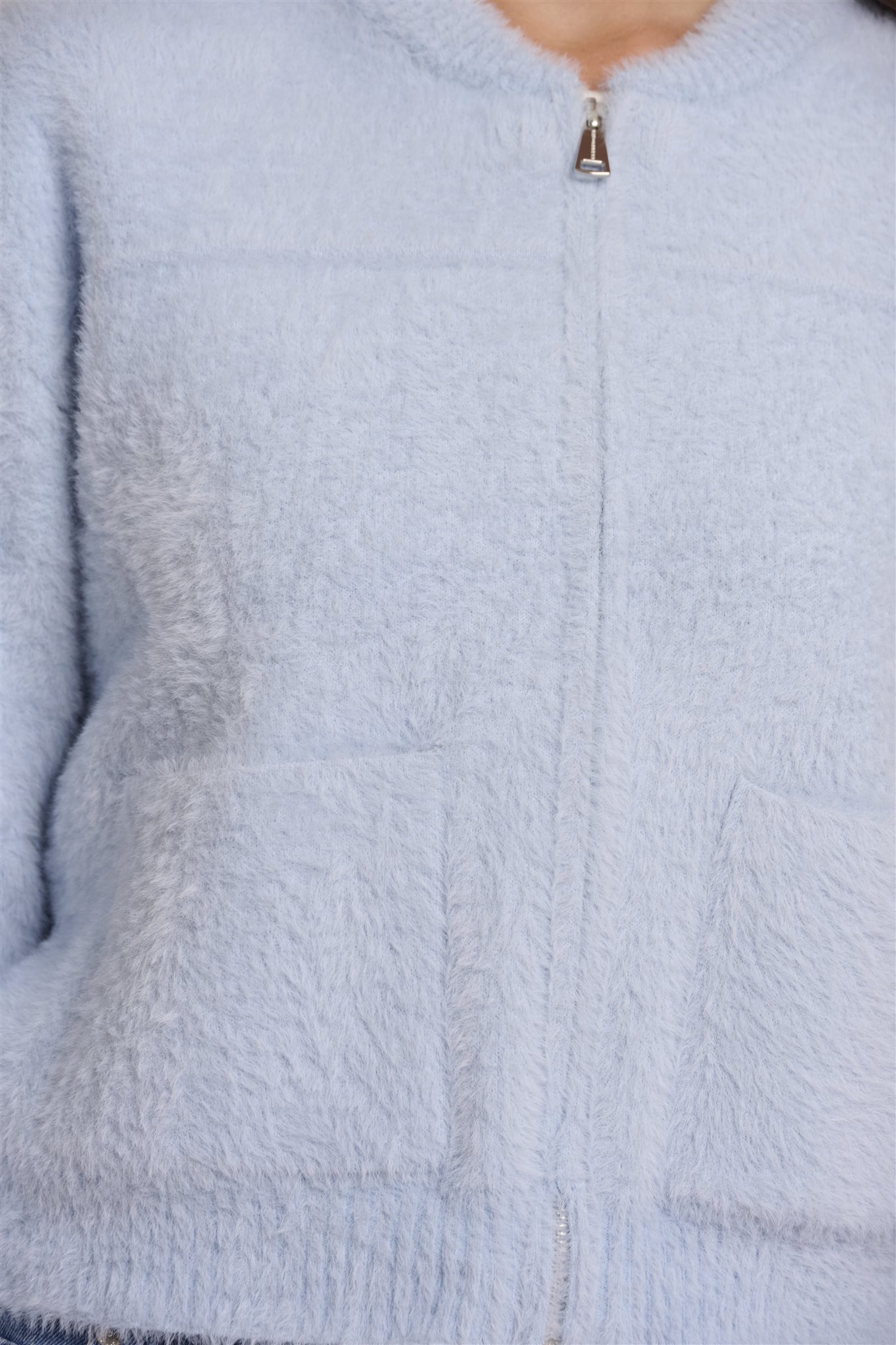 Dit korte, pluche jack combineert een zachte, pluizige textuur met een modern, gestructureerd ontwerp. Art Bento in de kleur light blue, merk Rino&Pelle. 69% polyamide, 23% polyester, 8% viscose