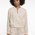 Voel je moeiteloos elegant in dit lichtgewicht jack met rits, gemaakt van een zachte viscosemix met een subtiel doorschijnende textuur voor een verfijnde, luchtige look. Het jack is ontworpen met een elegante ritssluiting, klepzakken met knoopsluiting en een trekkoord in de zoom, en biedt de perfecte balans tussen structuur en draagcomfort. Art Quine kleur birch merk Rino&Pelle.